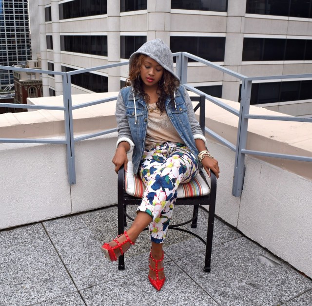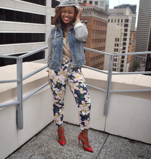 Jacket: Free People Denim Jacket. Blouse: HM(Old). Pant:J.Crew:(spring collection. new print)Floral Pant. Shoes: Valentino Punkouture Rockstud. Accessories: J. Crew. Lipstick: Mac Vivia Glam Rihanna RIRI.