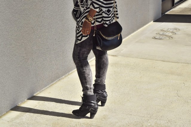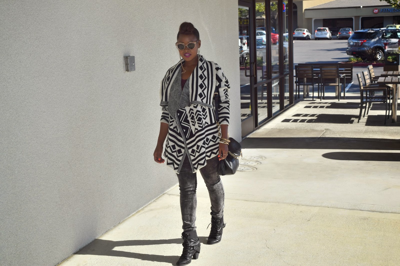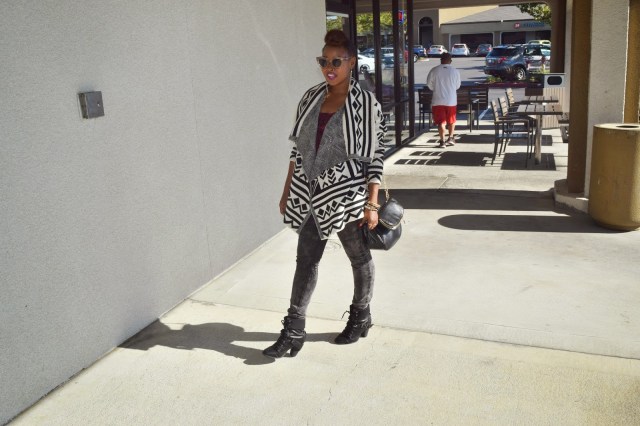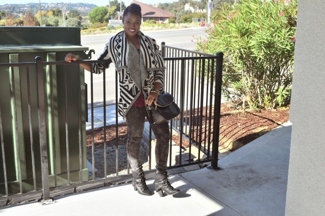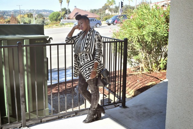 The Last few days its been freezing in the AM and HOT as the day progresses. This look works because my knit sweater keeps me warm when needed and the crochet blouse does the job of keeping me cool when heated. I love big chucky sweaters right now, but my only pet peeve is they tend to make me look a little chucky myself… but on the other hand, I can afford to loose a few pounds(I’ve been eating a little to good lol!). Enjoy this beautiful Thursday and oh yeah my beautiful guest appearance!